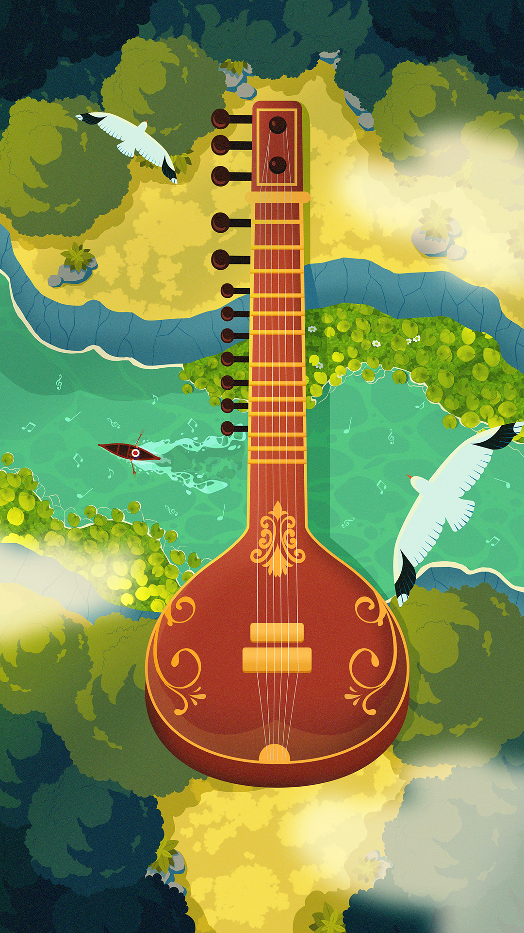 Illustrations made for Spotify, introducing their Tabla, Sitar and Flute Playlists.