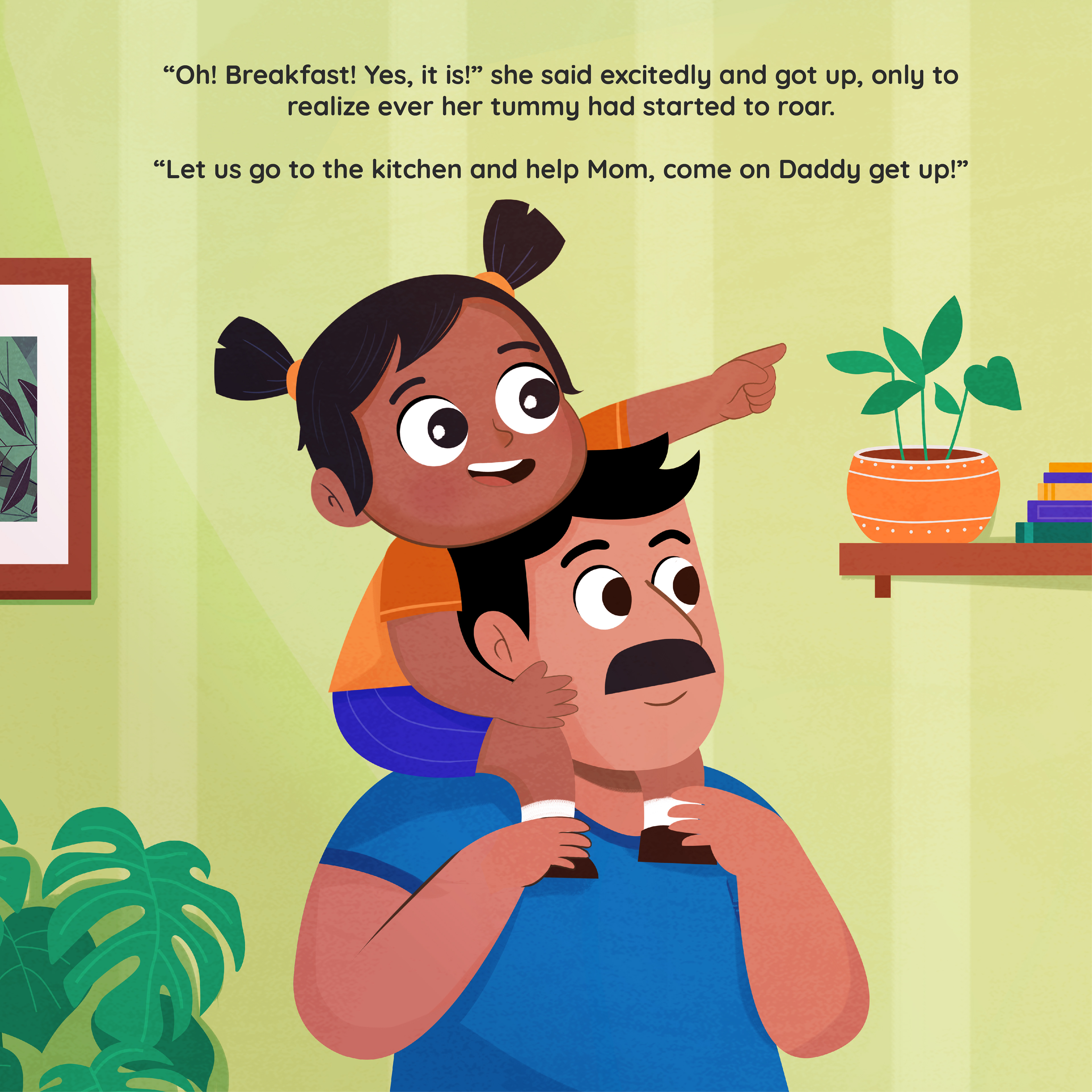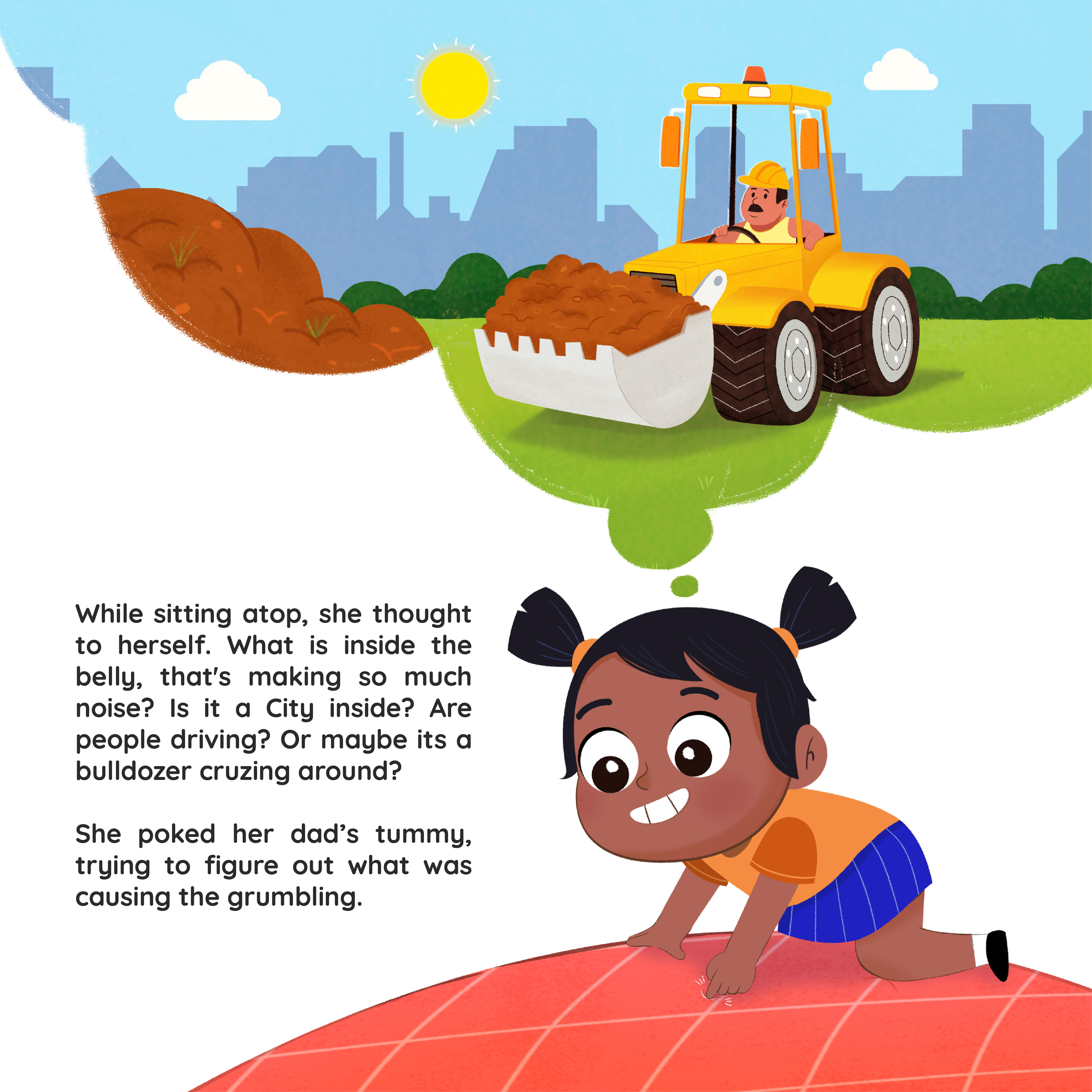 Personal Storybook project written by Pooja Pole and illustrated by me. The idea for the project was to create a whimsical story inspired by my childhood fascination of a grumbling tummy.